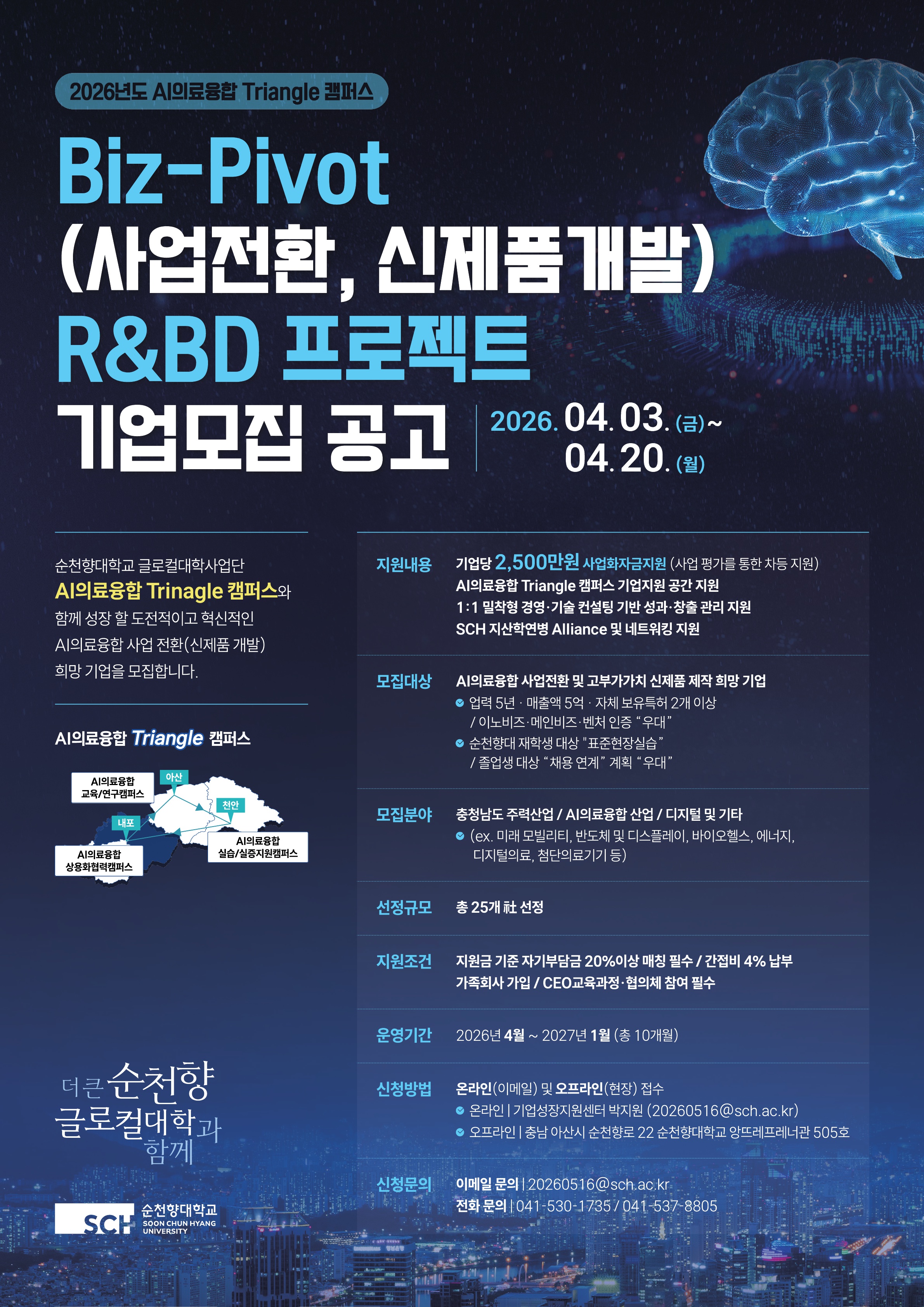 2026년도 AI의료융합 Triangle 캠퍼스 AI의료융합 Biz-Pivot R&BD 기업지원 모집 공고