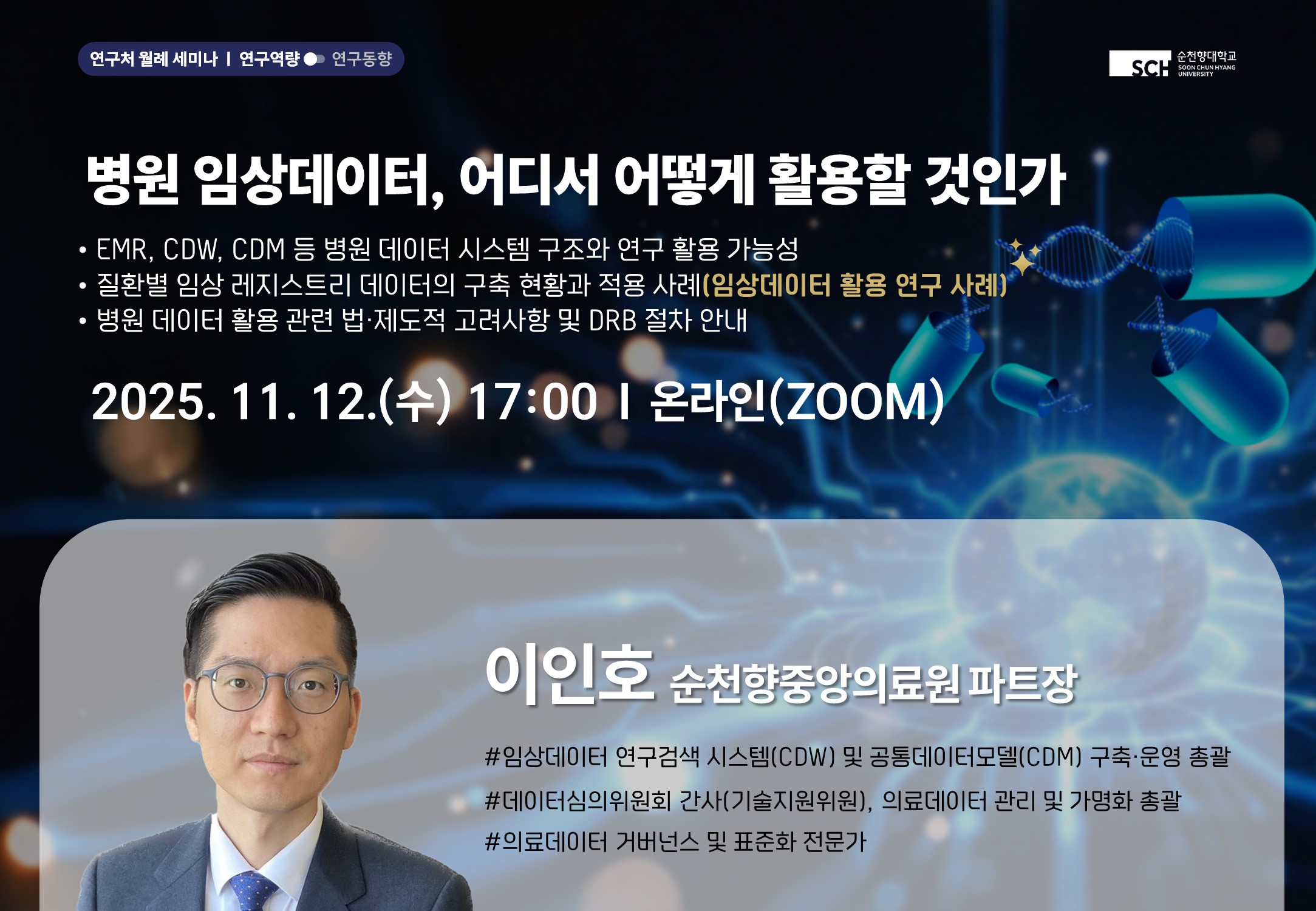 2025년 11월 SCH 연구역량 세미나ㅣ병원 임상데이터, 어디서 어떻게 활용할 것인가ㅣ2025.11.12.(수) 17:00