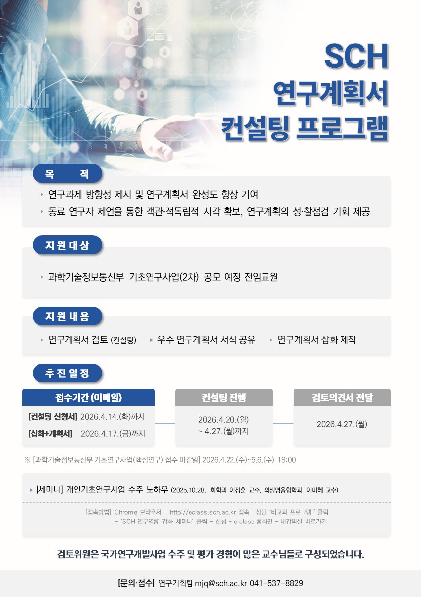 연구계획서 컨설팅 프로그램 안내(연구계획서 검토 / 우수 연구계획서 템플릿 공유 / 연구계획서 삽화 제작 지원)