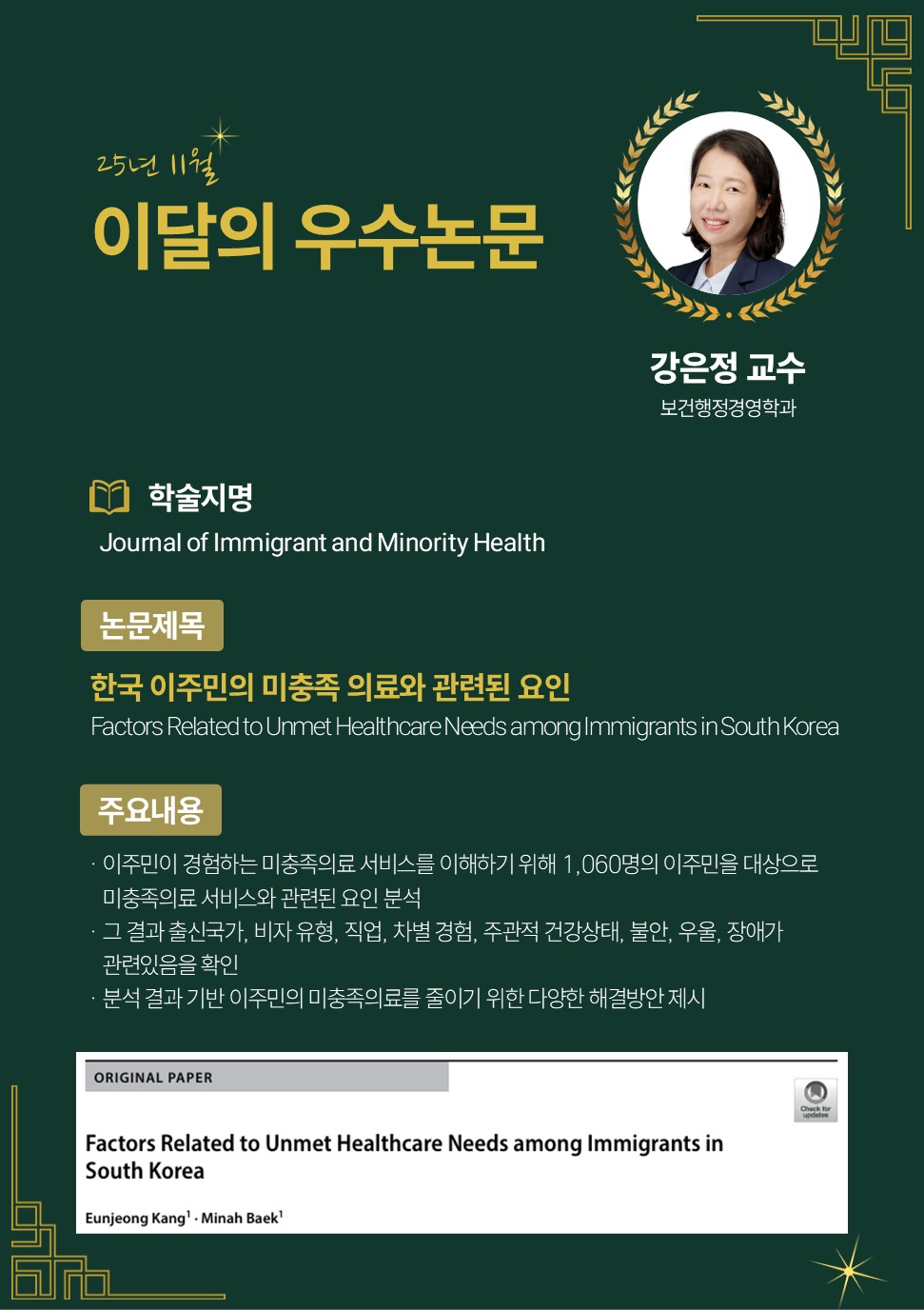 [25년 11월] Factors Related to Unmet Healthcare Needs among Immigrants in South Korea
