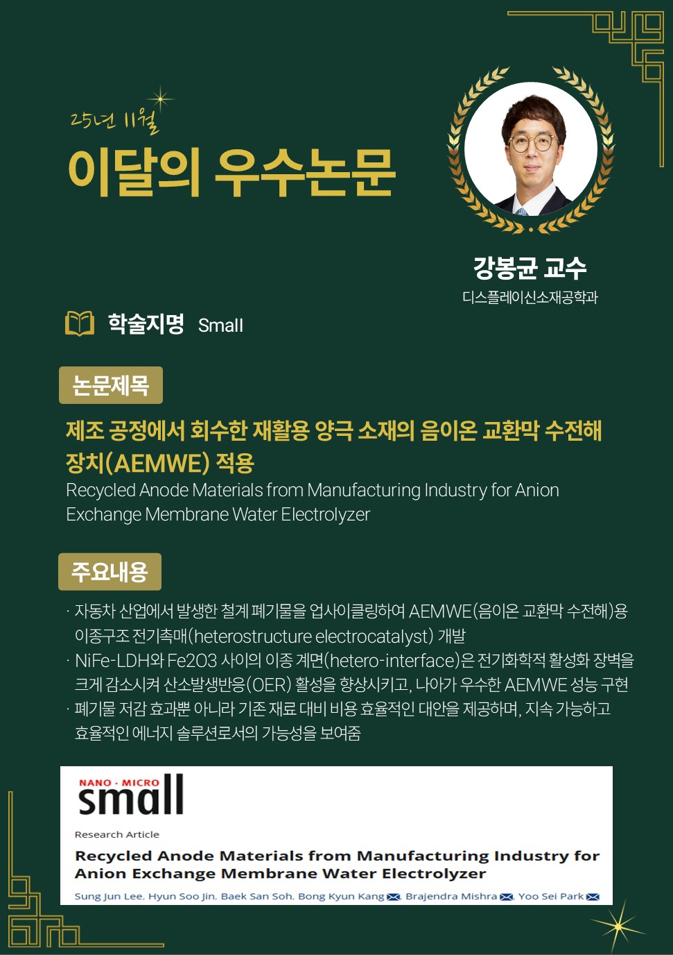 [25년 11월] Recycled Anode Materials from Manufacturing Industry for Anion Exchange Membrane Water Electrolyzer