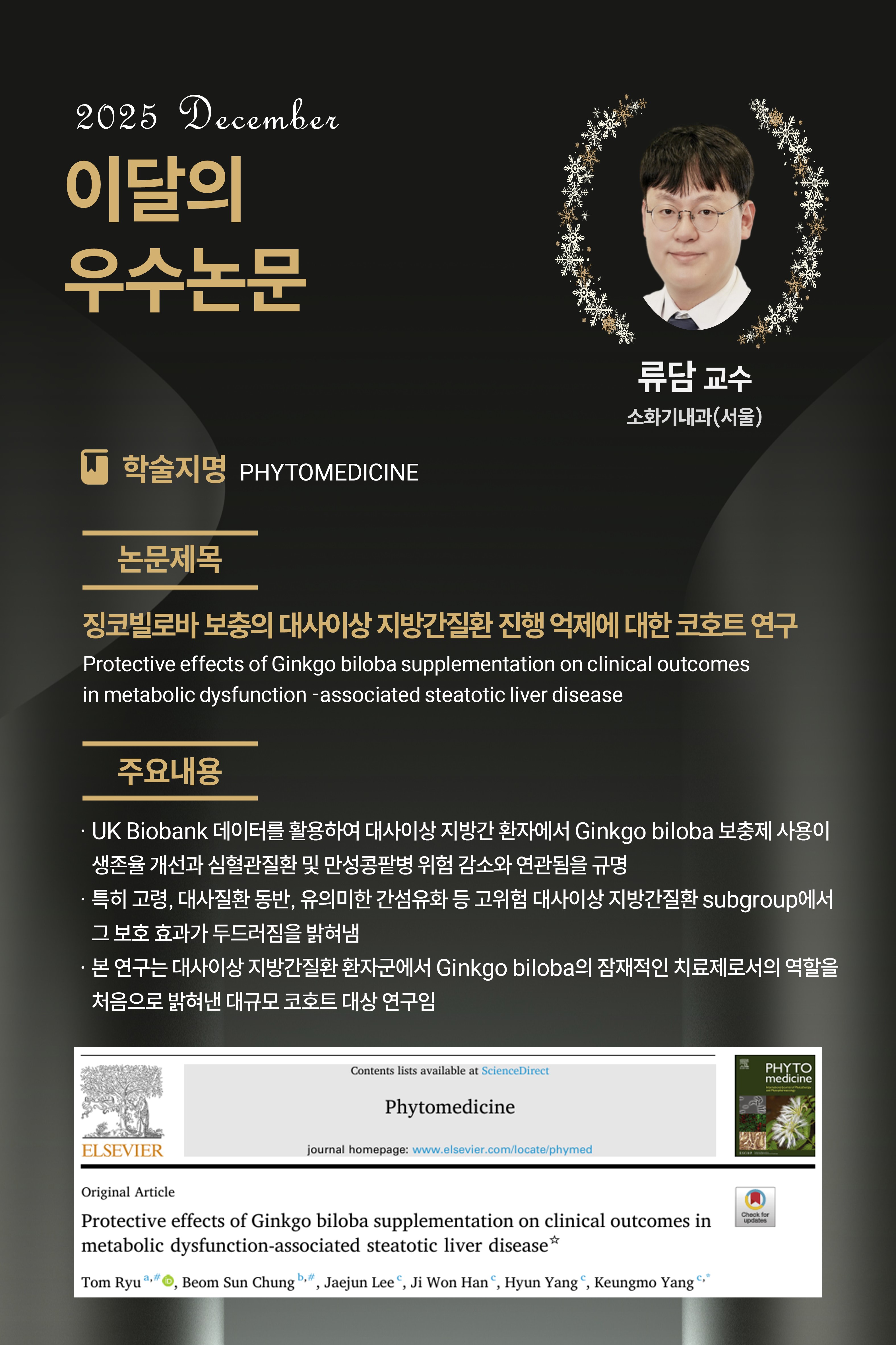 [25년 12월] Protective effects of Ginkgo biloba supplementation on clinical outcomes in metabolic dysfunction -associated steatotic liver disease
