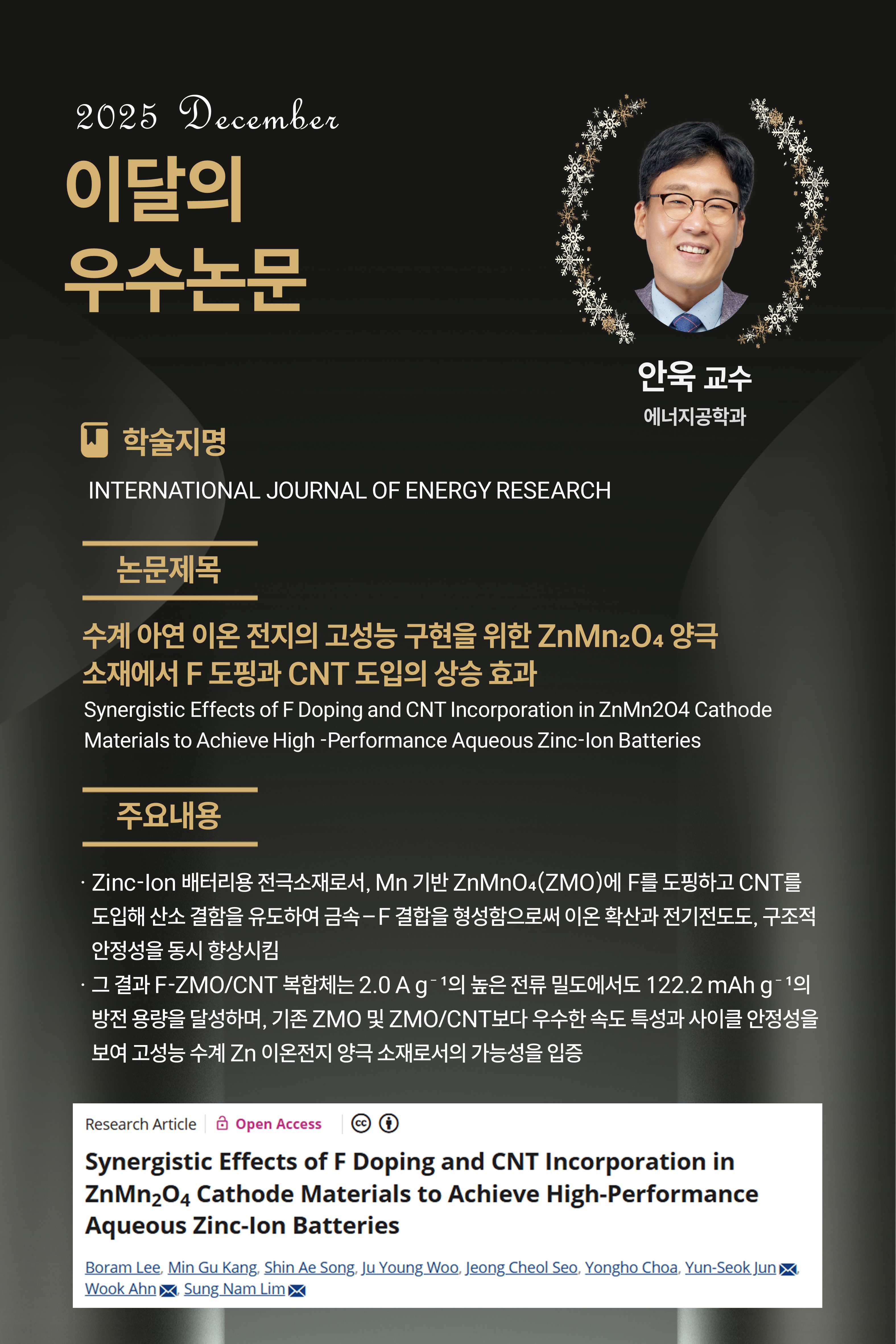 [25년 12월] Synergistic Effects of F Doping and CNT Incorporation in ZnMn2O4 Cathode Materials to Achieve High -Performance Aqueous Zinc-Ion Batteries