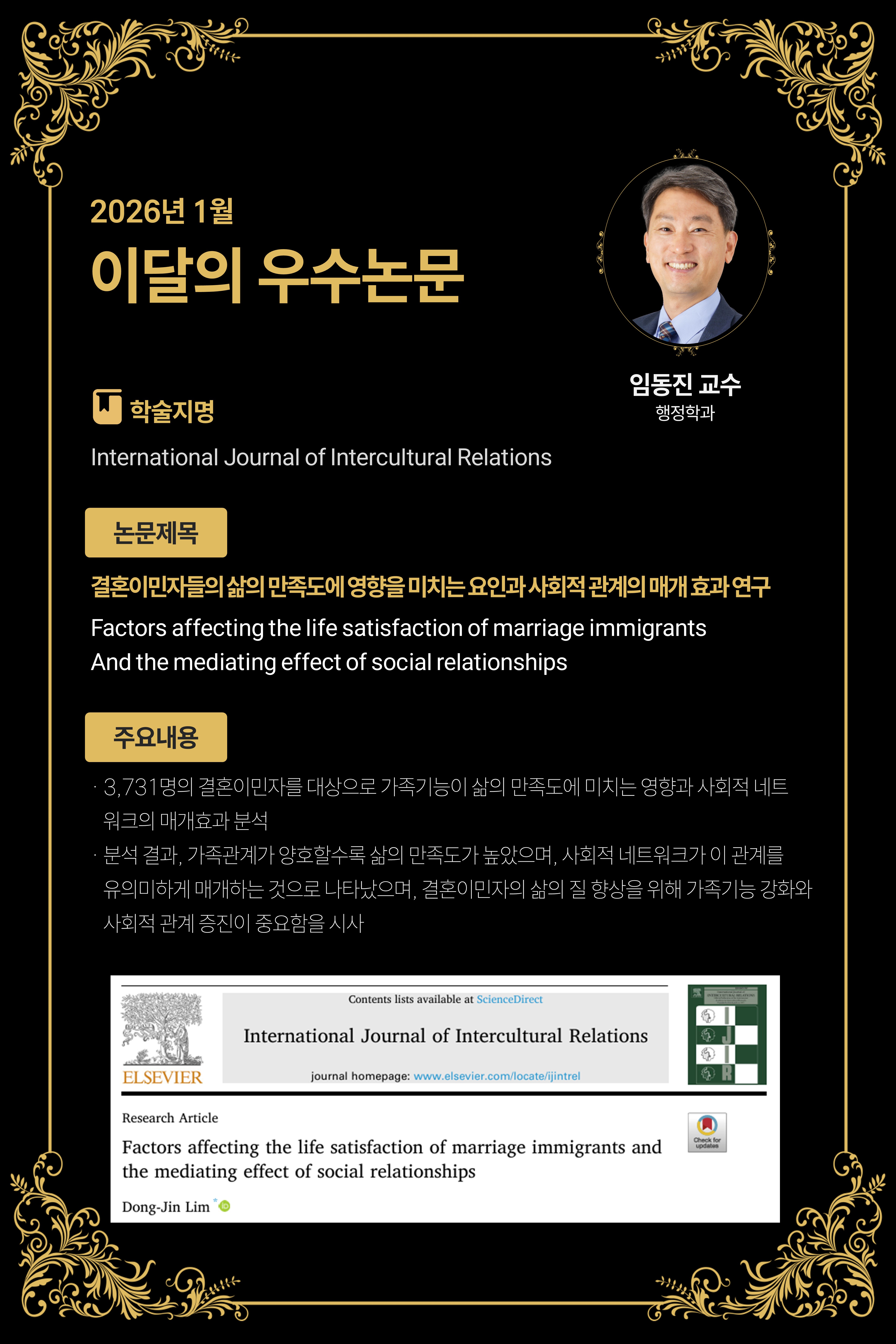 [26년 1월] Factors affecting the life satisfaction of marriage immigrants and the mediating effect of social relationships
