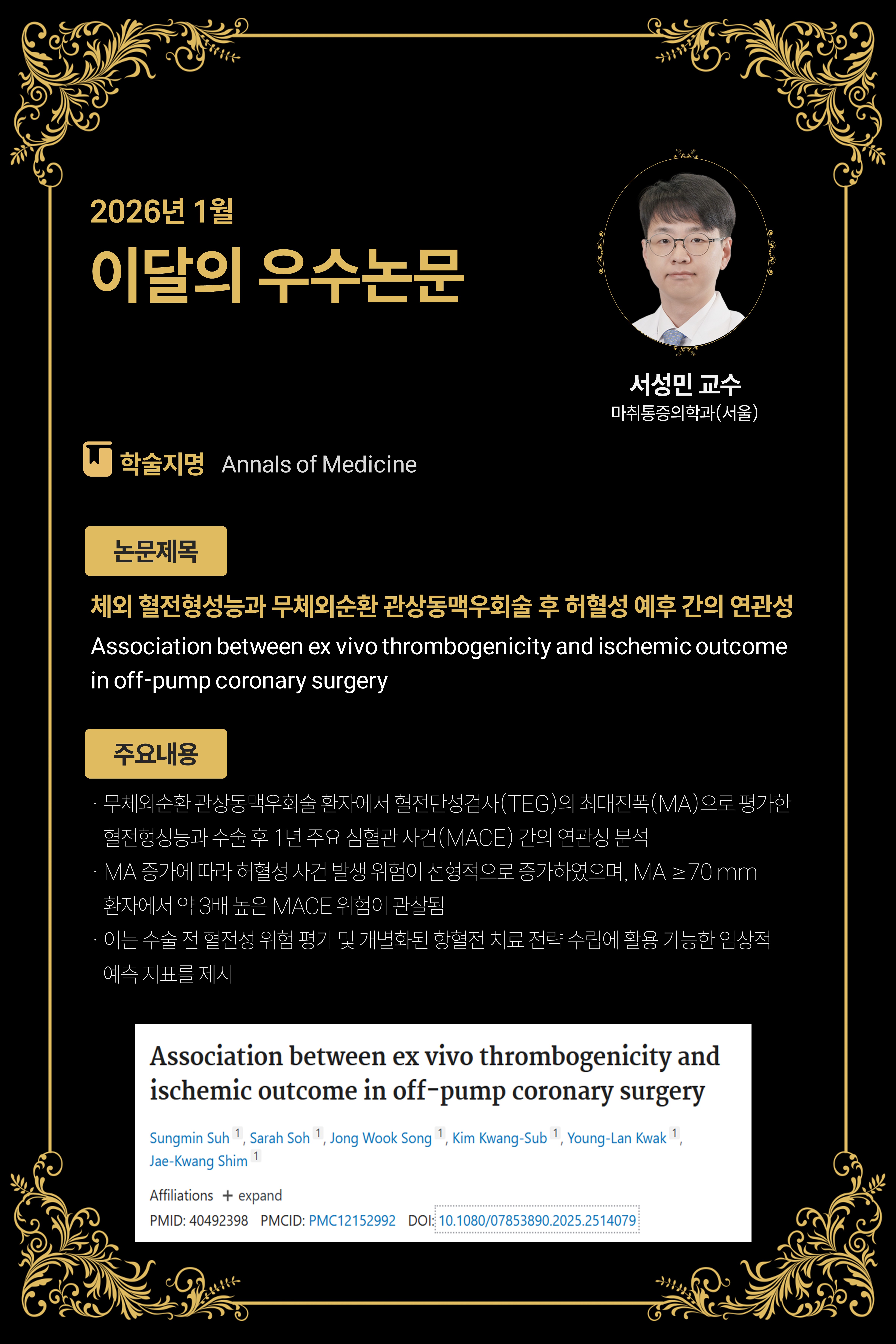 [26년 1월] Association between ex vivo thrombogenicity and ischemic outcome in off-pump coronary surgery