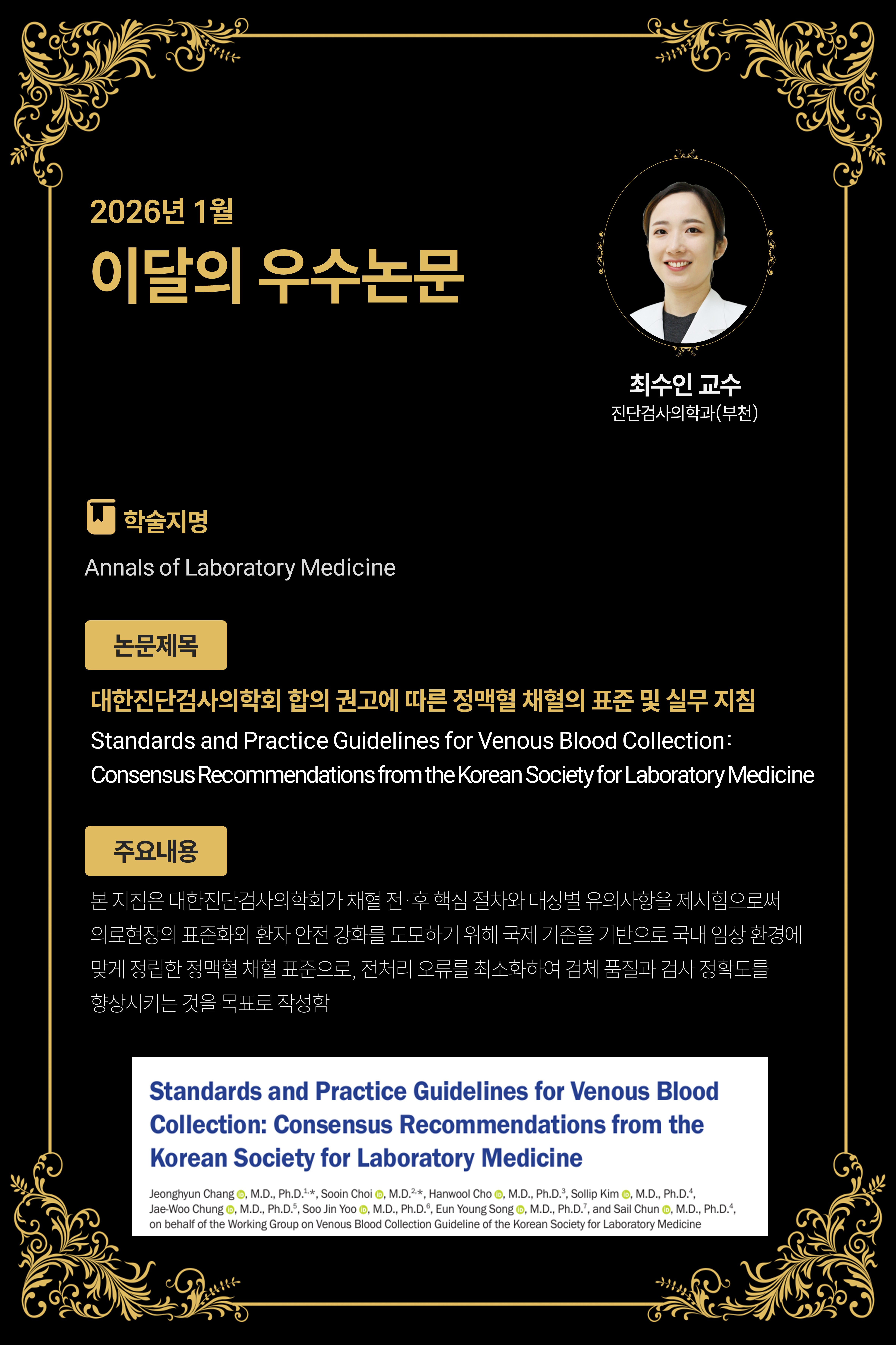 [26년 1월] Standards and Practice Guidelines for Venous Blood Collection: Consensus Recommendations from the Korean Society for Laboratory Medicine