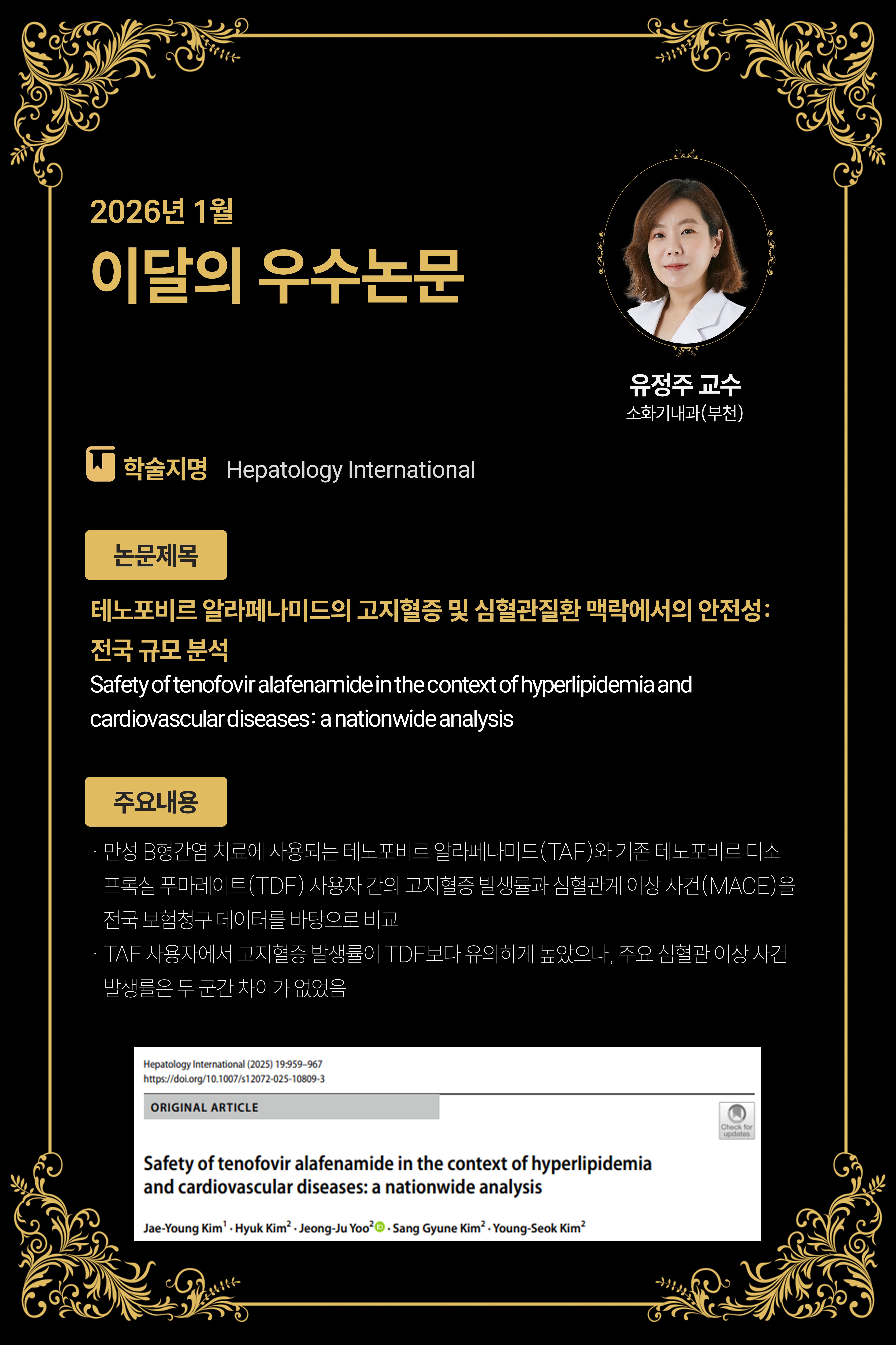 [26년 1월] Safety of tenofovir alafenamide in the context of hyperlipidemia and cardiovascular diseases: a nationwide analysis