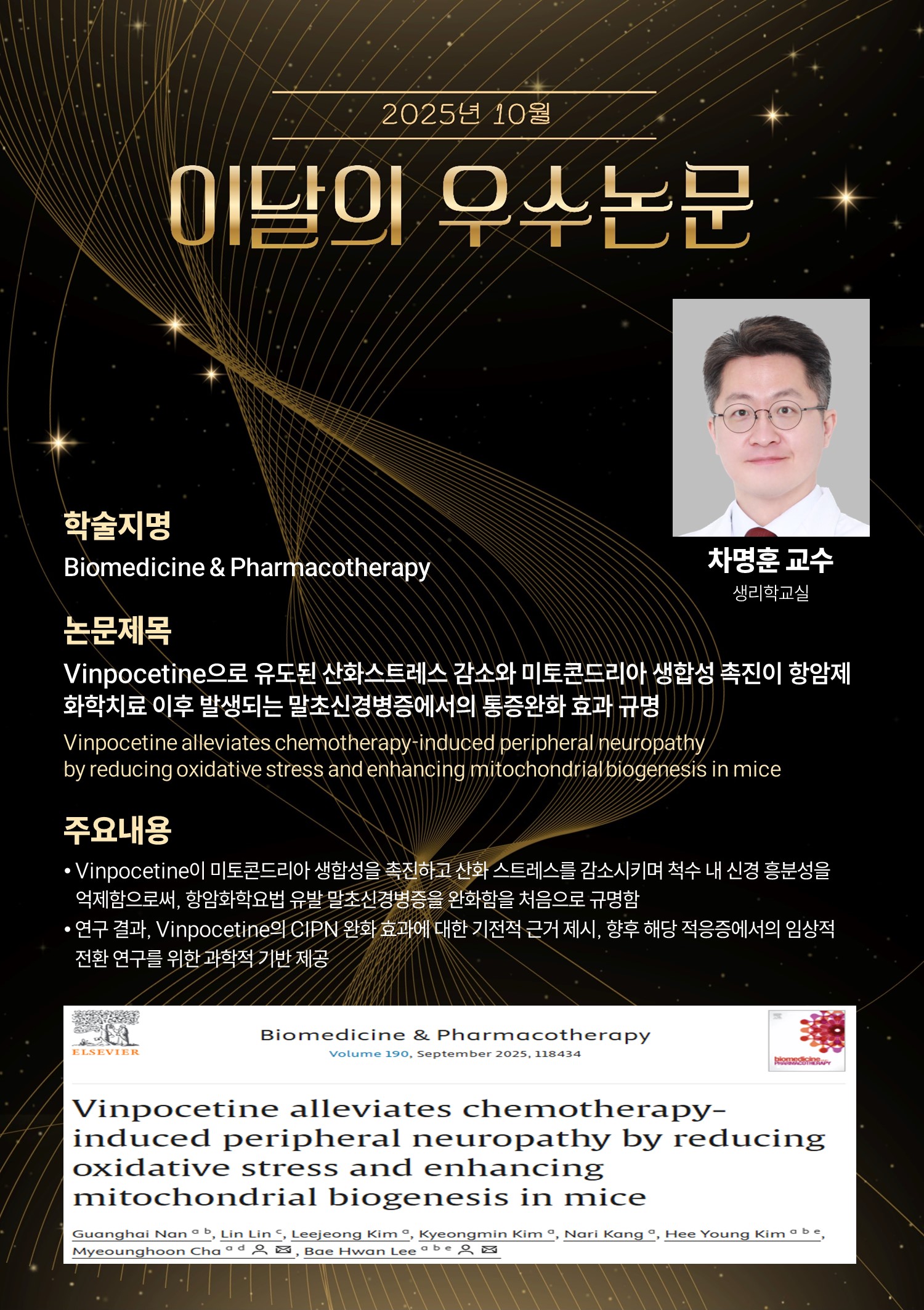 [25년 10월] Vinpocetine alleviates chemotherapy-induced peripheral neuropathy by reducing oxidative stress and enhancing mitochondrial biogenesis in mice