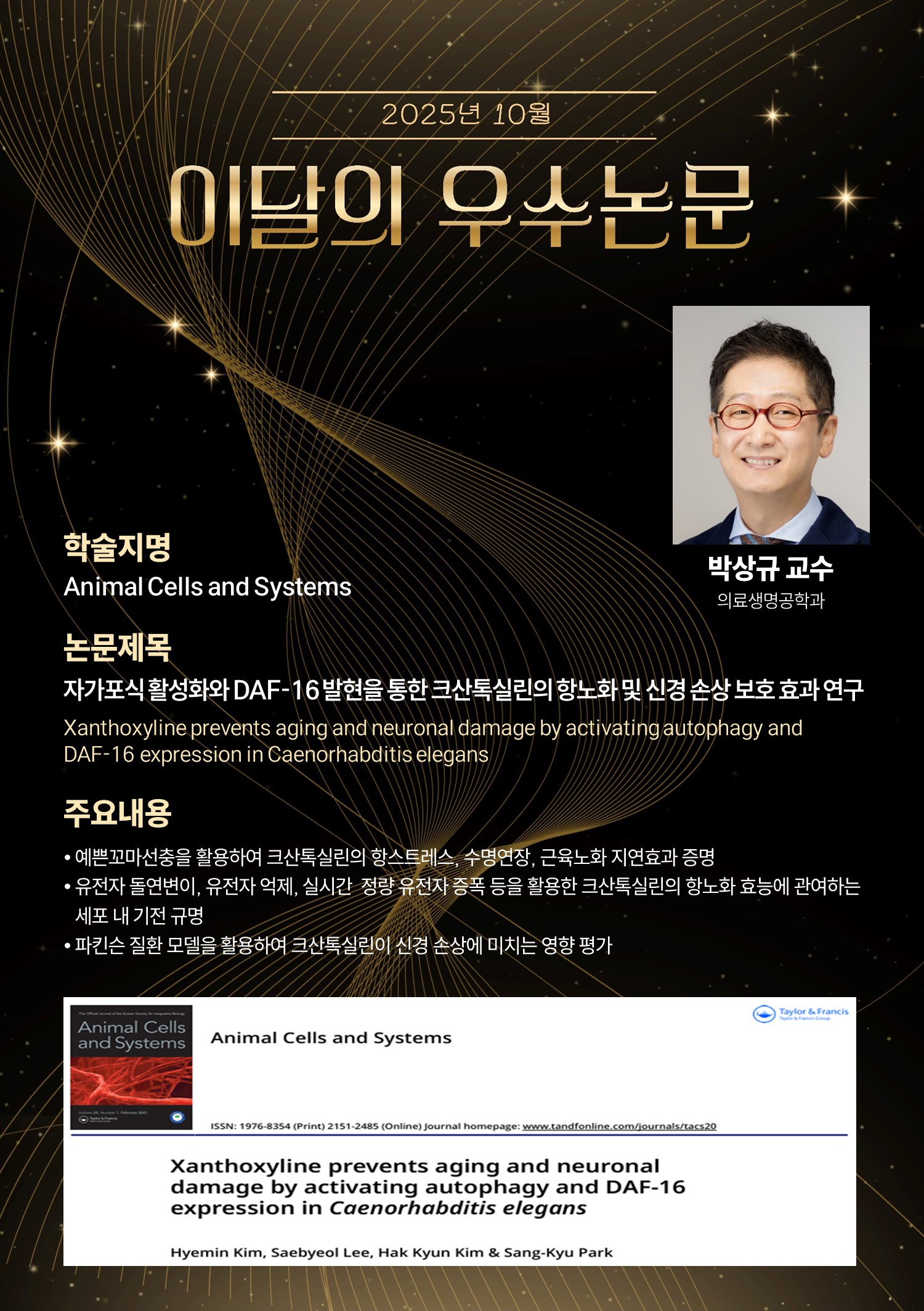 [25년 10월] Xanthoxyline prevents aging and neuronal damage by activating autophagy and DAF-16 expression in Caenorhabditis elegans