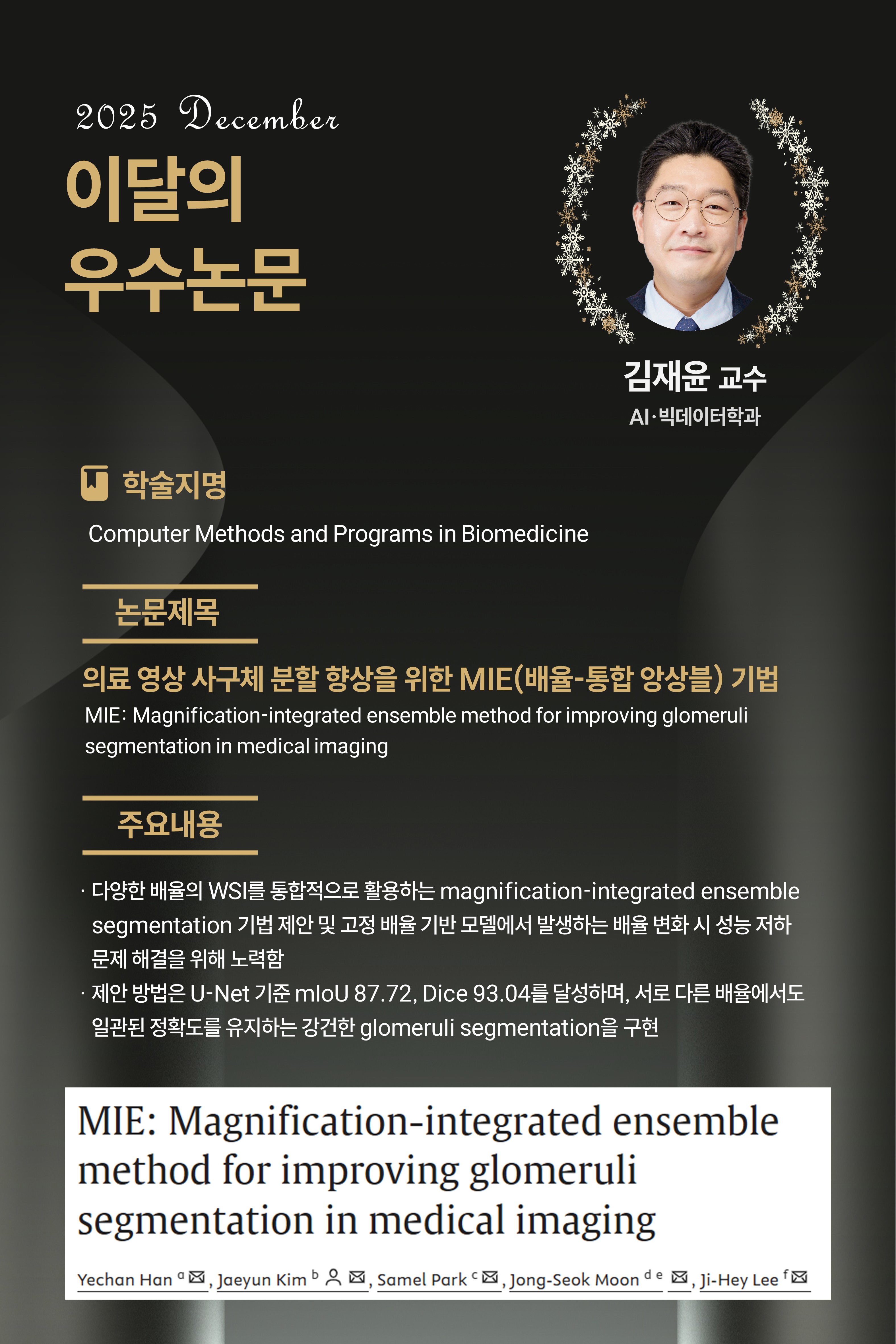 [25년 12월] MIE: Magnification-integrated ensemble method for improving glomeruli segmentation in medical imaging