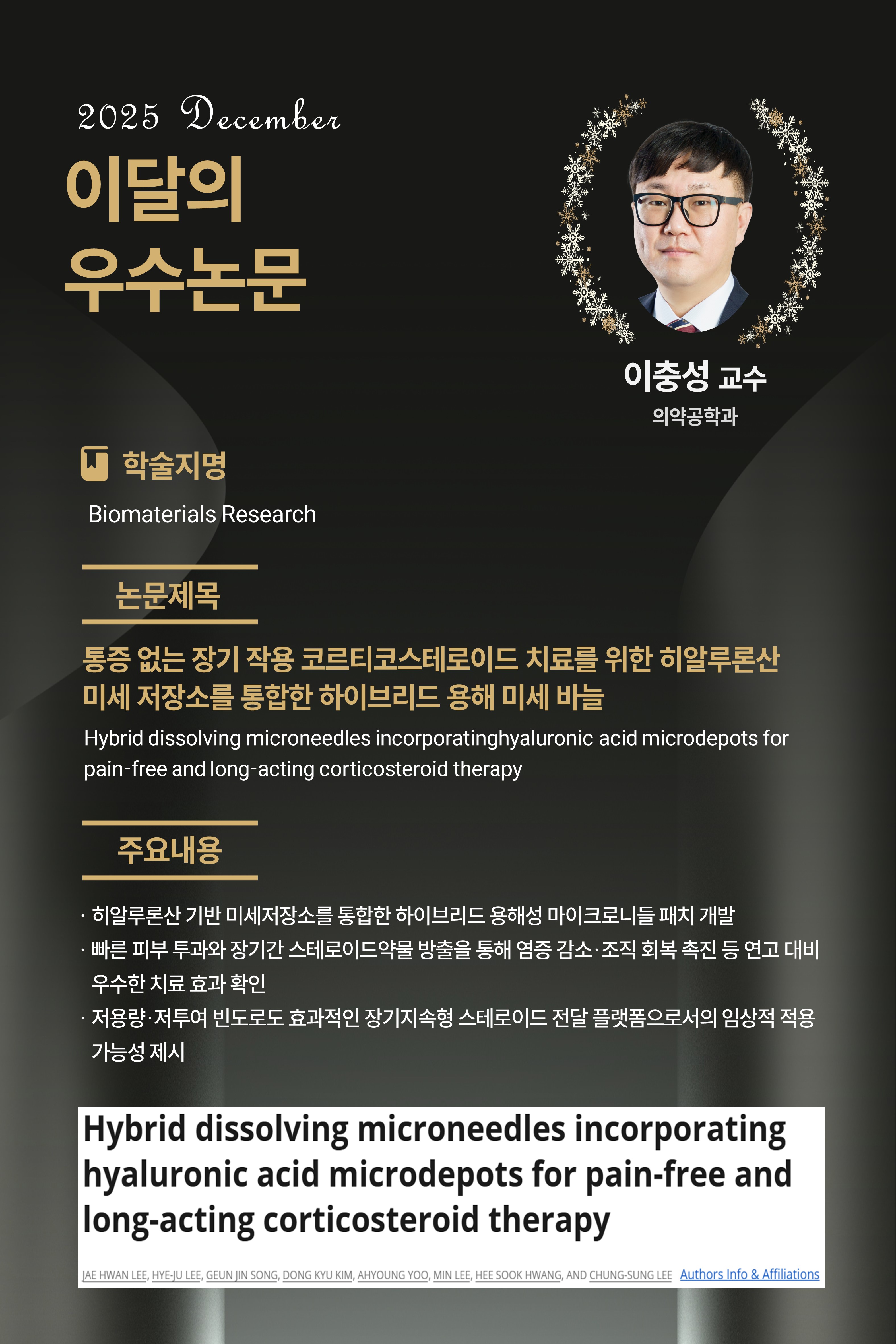 [25년 12월] Hybrid dissolving microneedles incorporatinghyaluronic acid microdepots for pain-free and long-acting corticosteroid therapy