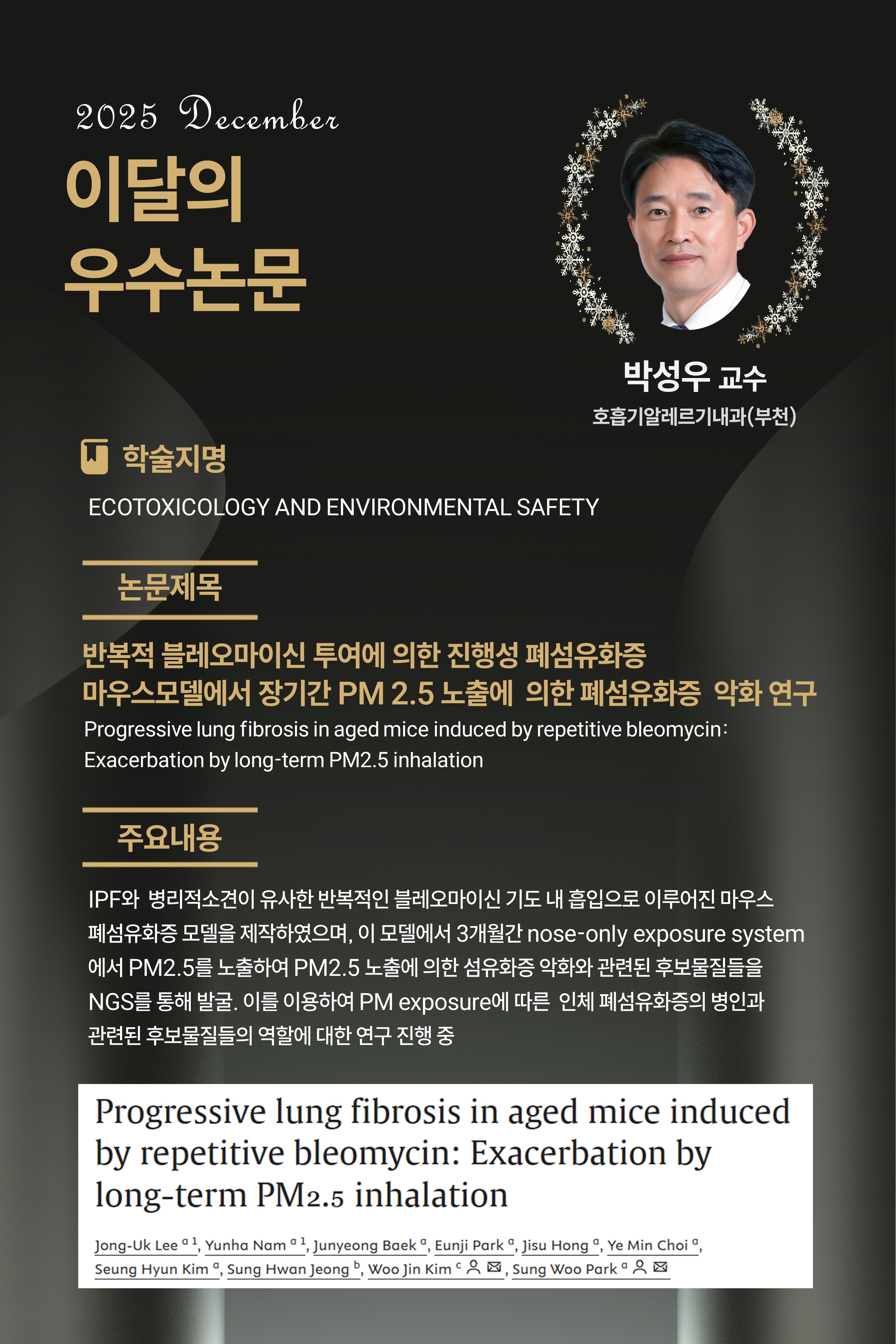 [25년 12월] Progressive lung fibrosis in aged mice induced by repetitive bleomycin: Exacerbation by long-term PM2.5 inhalation