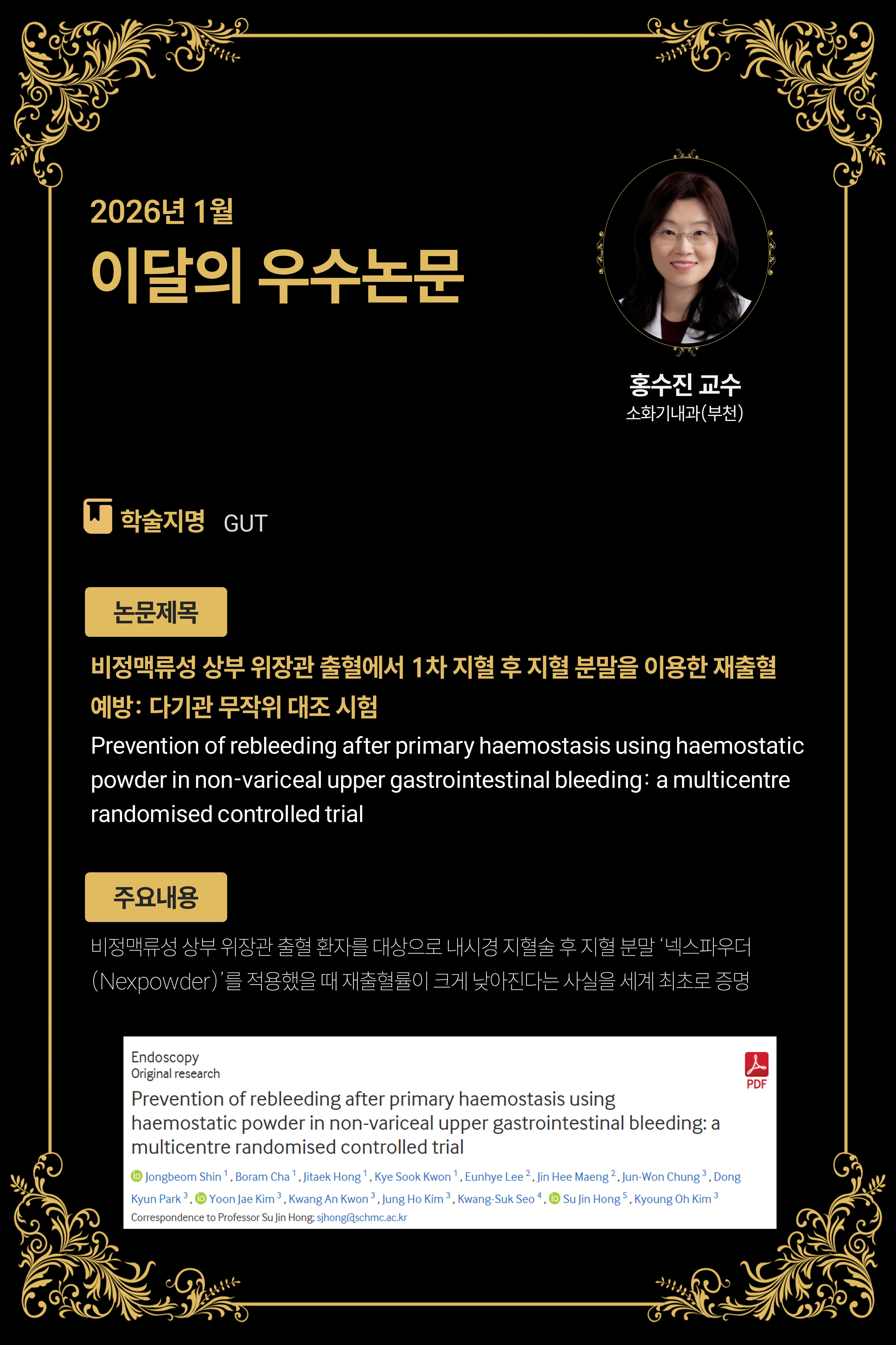 [26년 1월] Prevention of rebleeding after primary haemostasis using haemostatic powder in non-variceal upper gastrointestinal bleeding: a multicentre randomised controlled trial