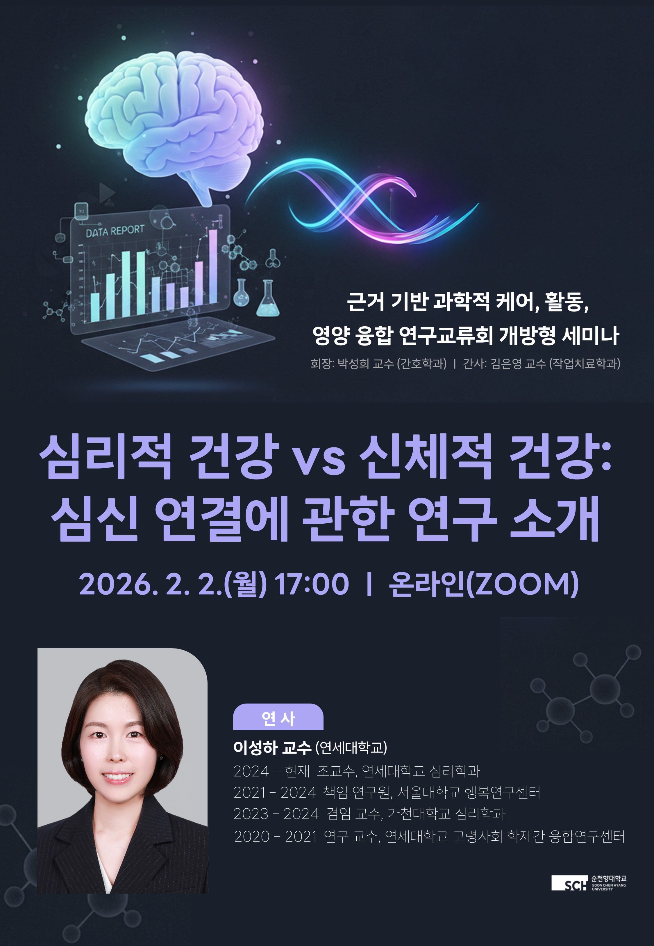 심리적 건강 vs 신체적 건강: 심신 연결에 관한 연구 소개ㅣ이성하 교수(연세대학교)ㅣ2026.2.2.(월) 17:00