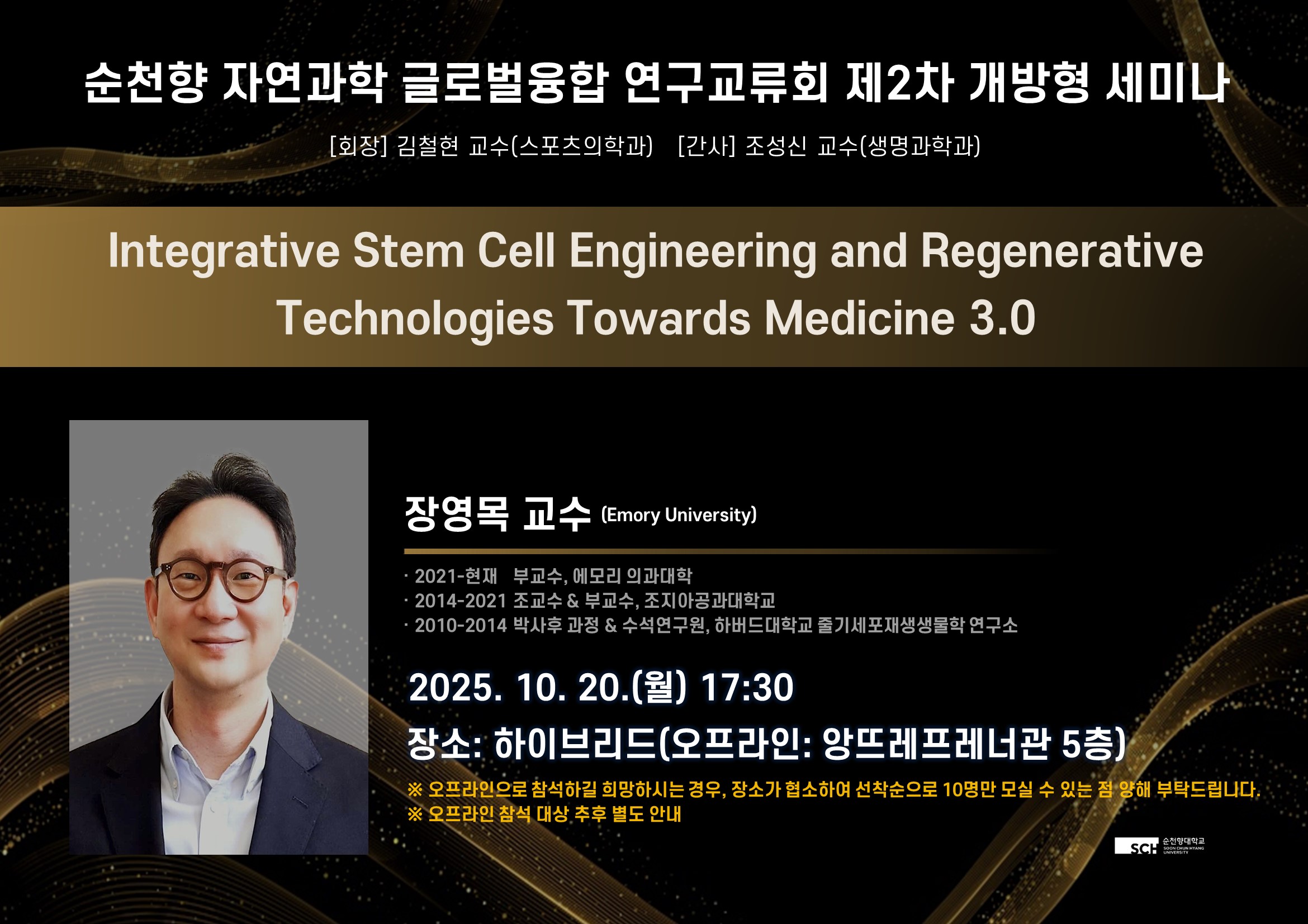 Integrative Stem Cell Engineering and Regenerative Technologies Towards Medicine 3.0ㅣ장영목 교수(Emory University)ㅣ2025.10.20.(월) 17:30