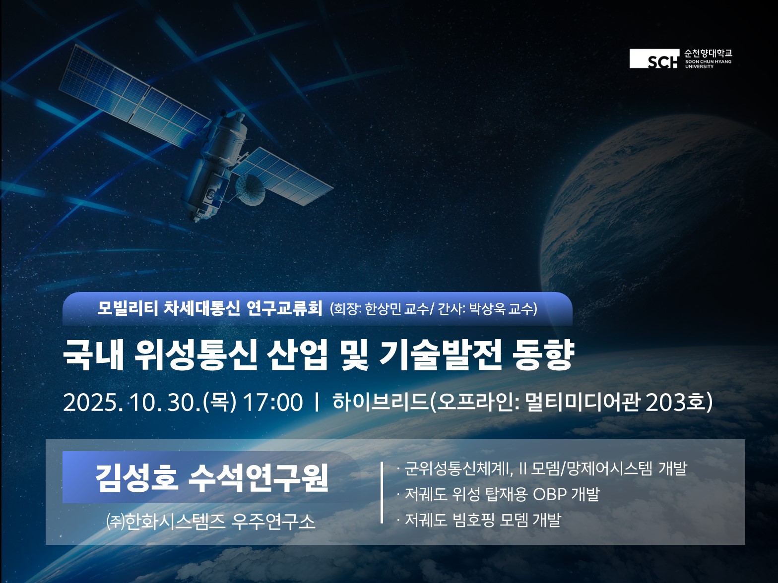 - 주제: (10.30. 17:00) 김성호 수석 세미나(회장 한상민 교수)
