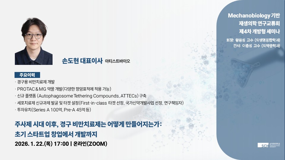 - 주제: (1.22. 17:00) 손도현 대표이사 세미나(회장 황용성 교수)